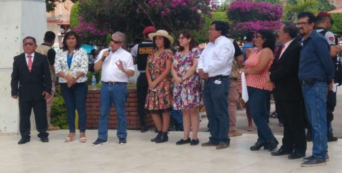 Durante la ceremonia en la plaza mayor de Moyobamba se develó las placas recordatorias de la declaratoria de Patrimonio Cultural de la Nación y del Récord Guinness que obtuvo la Pandilla Moyombambina en el 2017, como la danza folclórica más grande del Perú.
