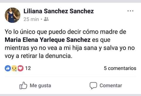 Este jueves por la mañana un joven identificado como Yull Vargas a través de su cuenta de facebook señaló que Maria Elena está en Iquitos y se encuentra bien, está sin celular y que el motivo de su silencio es porque quería estar desconectada del mundo. También trascendió que la anfitriona se comunicó con su madre, quien realizó una publicación en su red social.